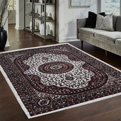 Prince Carpets Kashmiri Supersoft Wool Blend Persian Carpet for Living Room1 inch Thickness Anti Skid Washable Carpet White Color 8 x 11 feet