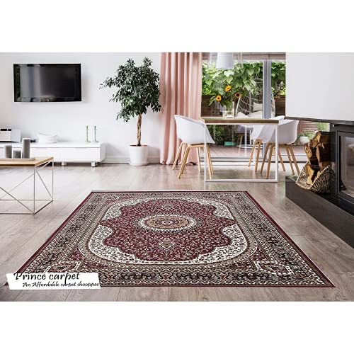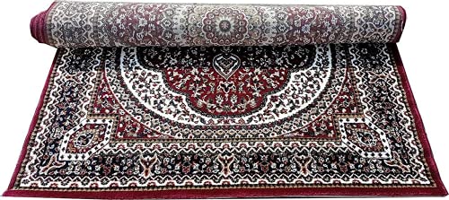 Prince Carpets Kashmiri Supersoft Wool Blend Persian Design Carpet for Living Room Bedroom Drawing Room Hall Anti Slip Backing Thick Washable Carpet Red Color 6 x 9 feet