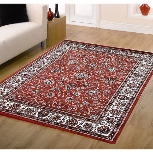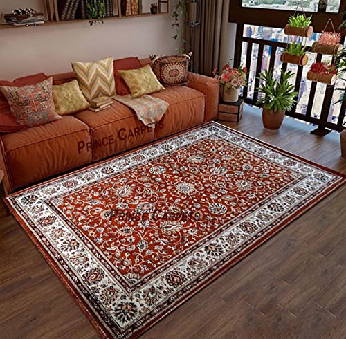 Prince Carpets Kashmiri Supersoft Wool Blend Persian Design Carpet for Living Room Bedroom Drawing Room Hall Anti Slip Backing Thick Washable Carpet Rust Color 5 x 7 feet