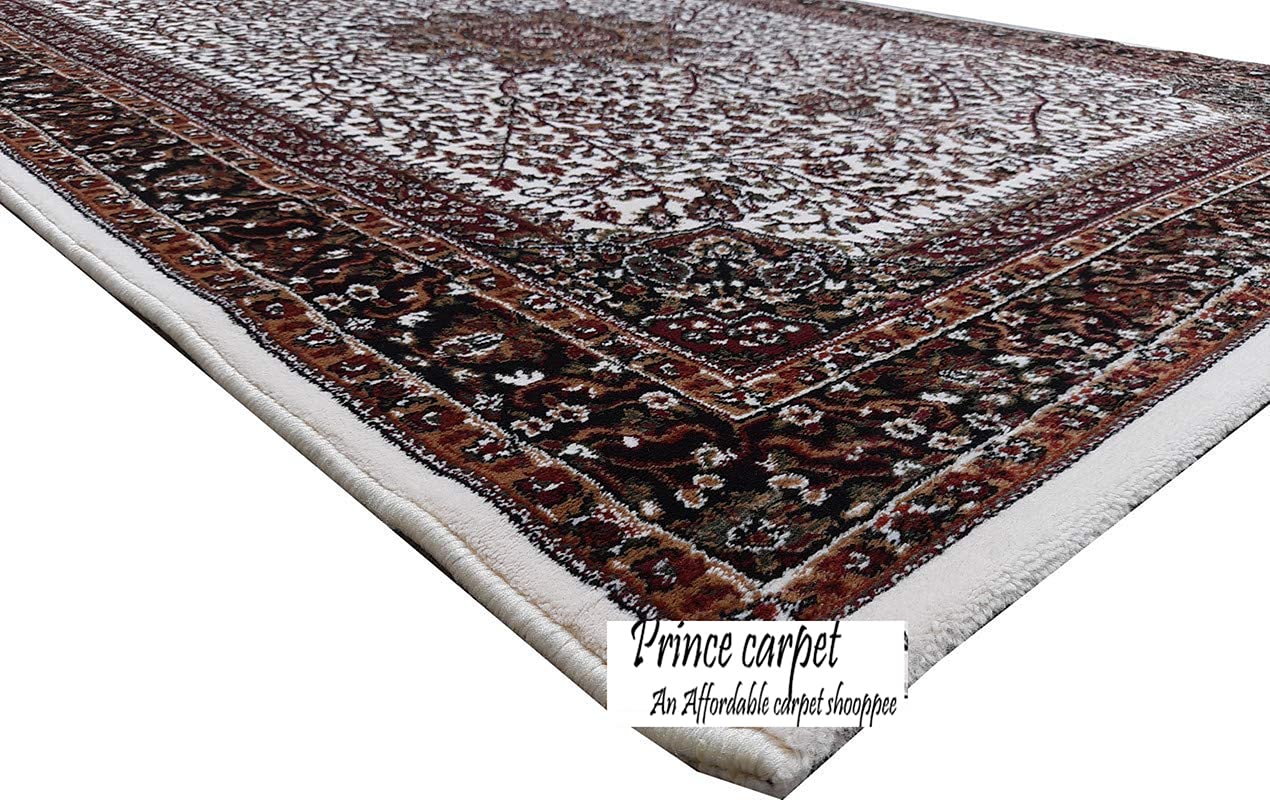 Prince Carpets Kashmiri Supersoft Wool Blend Persian Design Carpet for Living Room Bedroom Drawing Room Hall Anti Slip Backing Thick Washable Carpet White Color 6 x 9 feet