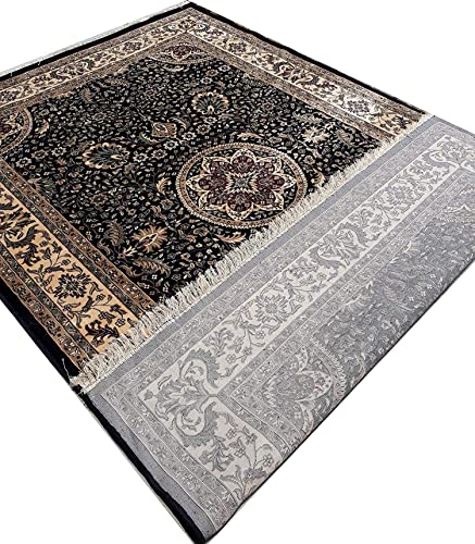 Prince Carpets Supersoft Kashmiri Silk Luxury Persian Design Anti Skid Backing Washable Carpets for Living Room Bedroom Drawing Room Hall Home Black Color 4 x 6 feet