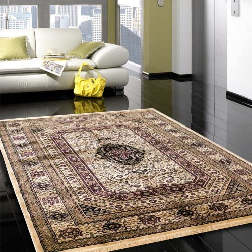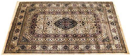 Prince Carpets Supersoft Kashmiri Silk Luxury Persian Design Anti Skid Backing Washable Carpets for Living Room Bedroom Drawing Room Hall Home Cream Color 4 x 6 feet