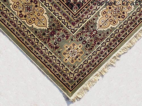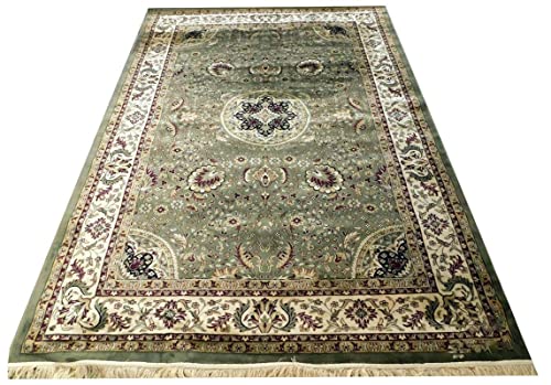 Prince Carpets Supersoft Kashmiri Silk Luxury Persian Design Anti Skid Backing Washable Carpets for Living Room Bedroom Drawing Room Hall Home Green Color 8 x 11 feet