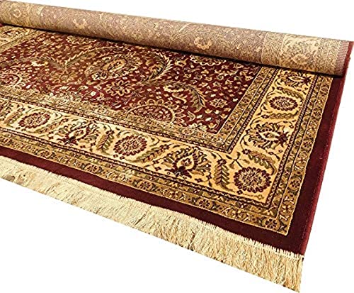 Prince Carpets Supersoft Kashmiri Silk Luxury Persian Design Anti Skid Backing Washable Carpets for Living Room Bedroom Drawing Room Hall Home Maroon Color 5 x7 feet