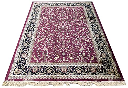 Prince Carpets Supersoft Kashmiri Silk Luxury Persian Design Anti Skid Backing Washable Carpets for Living Room Bedroom Drawing Room Hall Home Maroon Color 8 x 11 feet