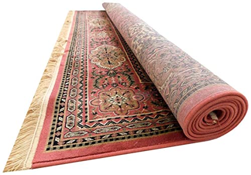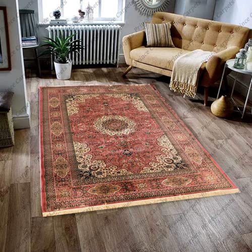 Prince Carpets Supersoft Kashmiri Silk Luxury Persian Design Anti Skid Backing Washable Carpets for Living Room Bedroom Drawing Room Hall Home Pink Color 4 x 6 feet