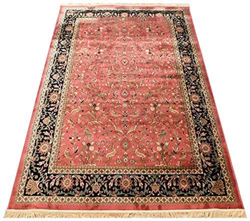 Prince Carpets Supersoft Kashmiri Silk Luxury Persian Design Anti Skid Backing Washable Carpets for Living Room Bedroom Drawing Room Hall Home Pink Color 4 x 6 feet