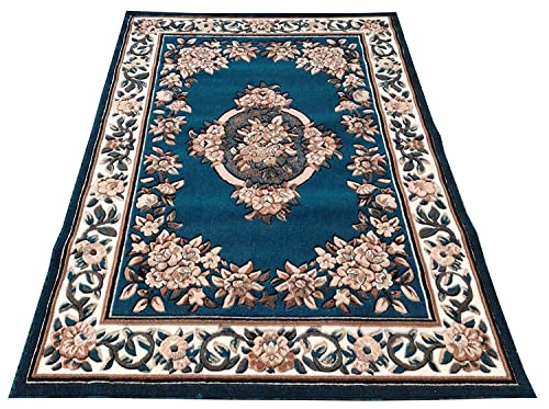 Prince Carpets Supersoft Wool Blend Carpets for Living Room Blue Color 4 feet x 5 feet